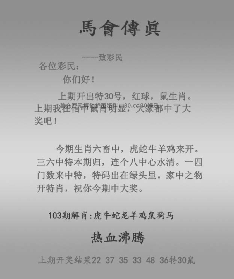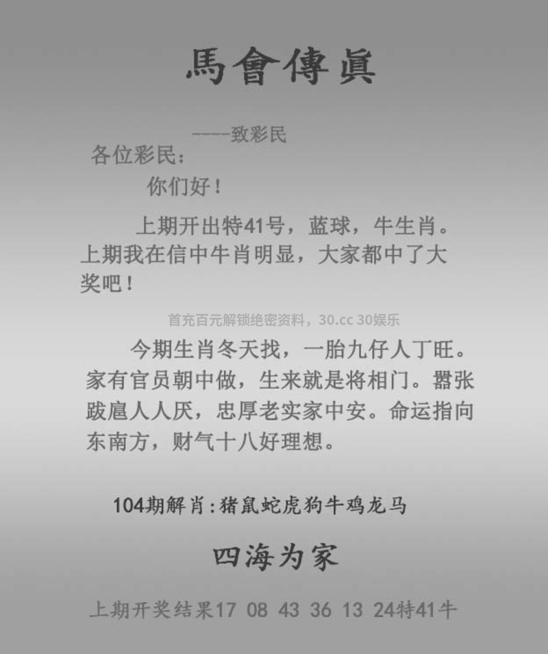 104期:★天地肖中特★【地肖】开:狗32准 |