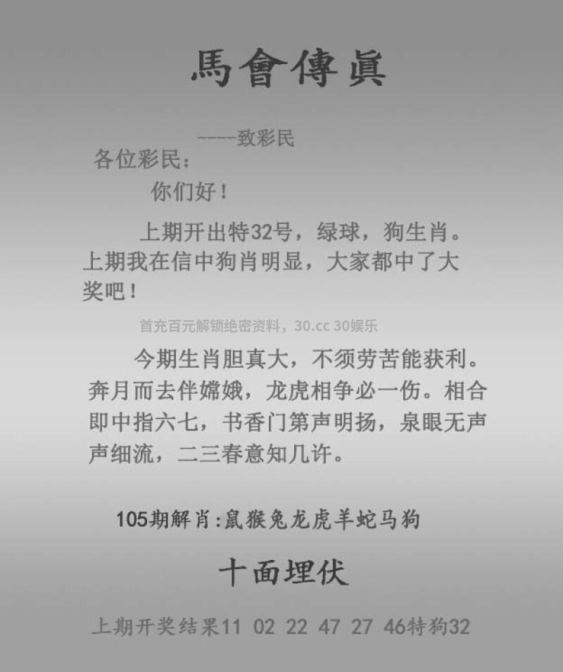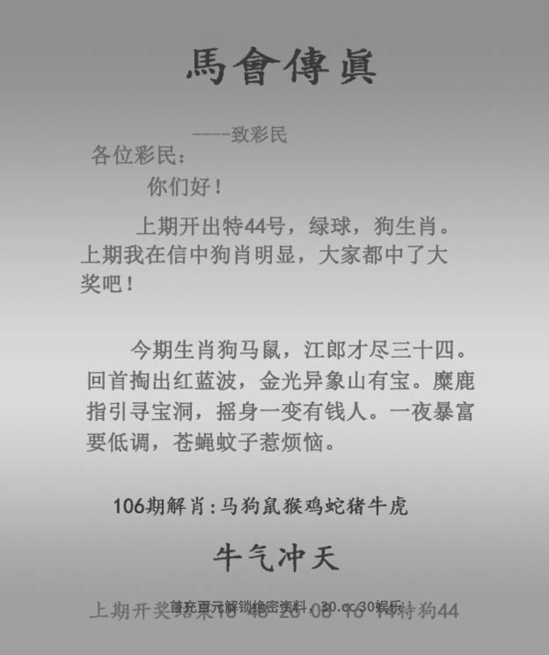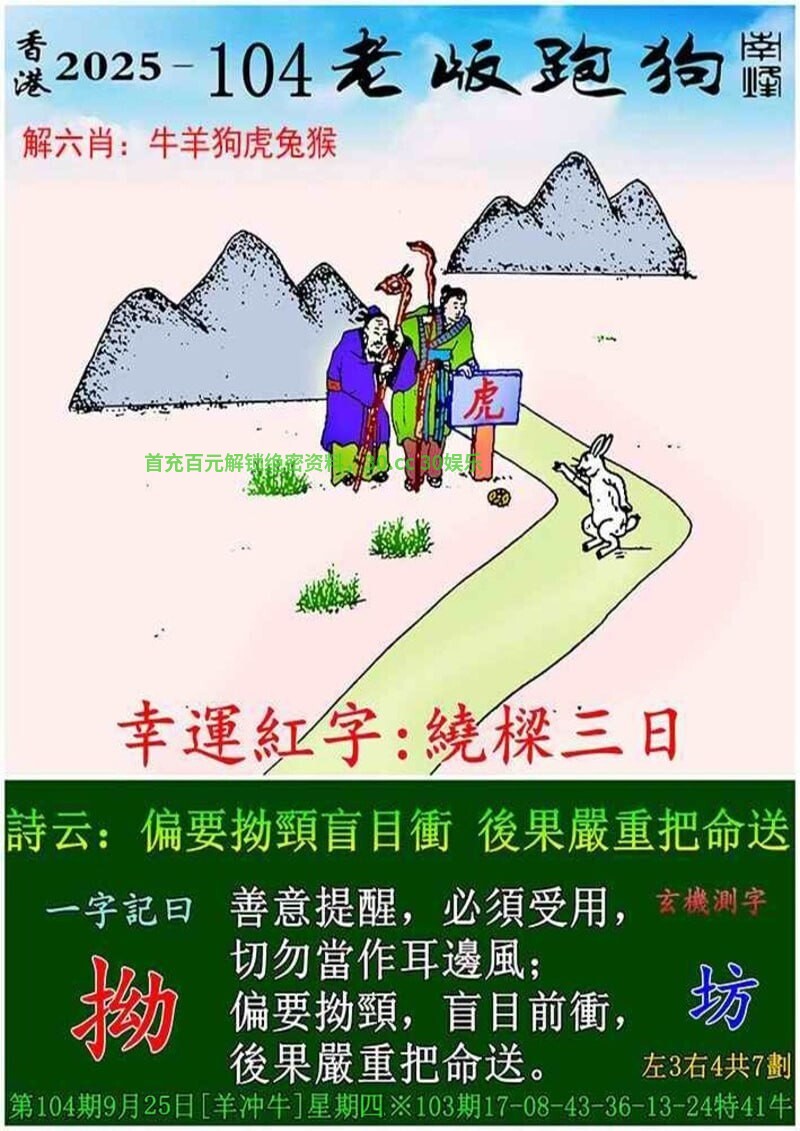 104期:绝杀二肖【牛龙】开:狗32准 |