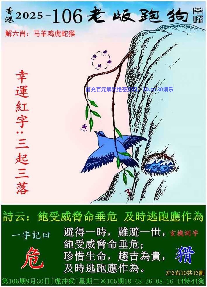 106期:绝杀二肖【马猴】开:猪43准 |