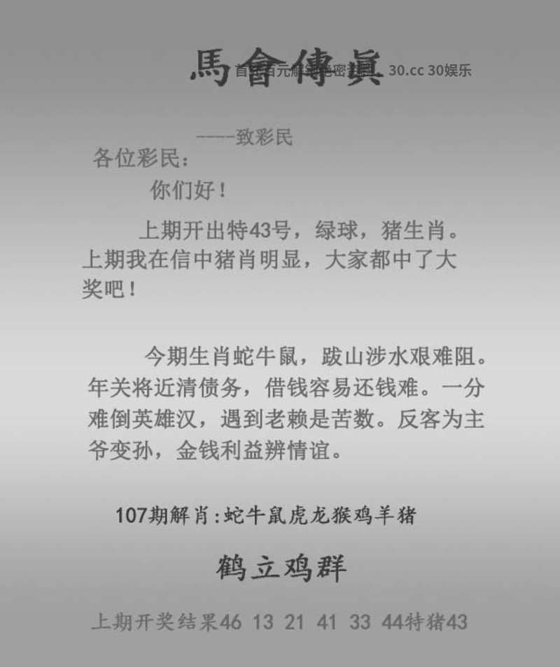 107期:绝杀二肖【兔龙】开:鸡33准 |